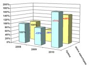 «По итогам 2010 г. продажи мониторов iiyama (в штуках) в нашей компании выросли на 71% по сравнению с 2009 годом. Мы считаем большим достижением, что в кризисный 2009 года продажи этой продукции у нас сократились не столь значительно (всего на 13%) по сравнению с продажами мониторов всех четырех производителей (тут падение составило 38%). А за первые пять месяцев 2011 г. продажи возросли на 75% по отношению к аналогичному периоду 2010 г.», - комментирует Сергей Пацкевич, вице-президент, директор департамента «Комплектующие, периферийное, цифровое оборудование, мобильные средства коммуникации» компании Марвел. Продажи мониторов iiyama в компании Марвел (в штуках) «Мы ценим наше сотрудничество с компанией iiyama и наблюдаем устойчивый спрос среди пользователей на мониторы этого японского производителя. Невысокая конкуренция в своем ценовом сегменте, гарантия отсутствия битых пикселей и хорошая маржа в дистрибьюторском канале позволяют нам успешно развивать бизнес с компанией iiyama», - говорит Павел Сурин, руководитель направления «Мониторы и ИБП» компании Марвел. Партнерская сеть Марвел и iiyama в России по итогам 2010 г. насчитывает 248 компаний из 58 городов во всех федеральных округах. Среди них преобладают компьютерные розничные магазины, интернет-магазины и корпоративные реселлеры. Распределение мониторов iiyama с точки зрения размера диагонали в обороте компании Марвел отличается от структуры продаж мониторов других производителей. В случае с iiyama 62% приходится на мониторы с диагональю более 21 дюйма, в то время как у большинства других производителей наибольшим спросом пользуются 17 и 19-дюймовые мониторы.