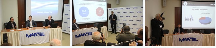 В конференции приняли участие первые лица компании Марвел-Дистрибуция: старший вице-президент, генеральный менеджер компании Константин Шляхов, вице-президент, заместитель генерального менеджера по ритейл бизнесу Вадим Степанишин и директор по маркетингу Александр Яновский. Кроме того, в качестве «специального гостя» был приглашен вице-президент HTC Russia & CIS Андрей Кормильцев. Поводом для пресс-конференции послужила продажа компанией Марвел-Дистрибуция 1 000 000 смартфонов с начала 2013 года. Как отметил Константин Шляхов, эта цифра значительно превышает показатели прошлого года.