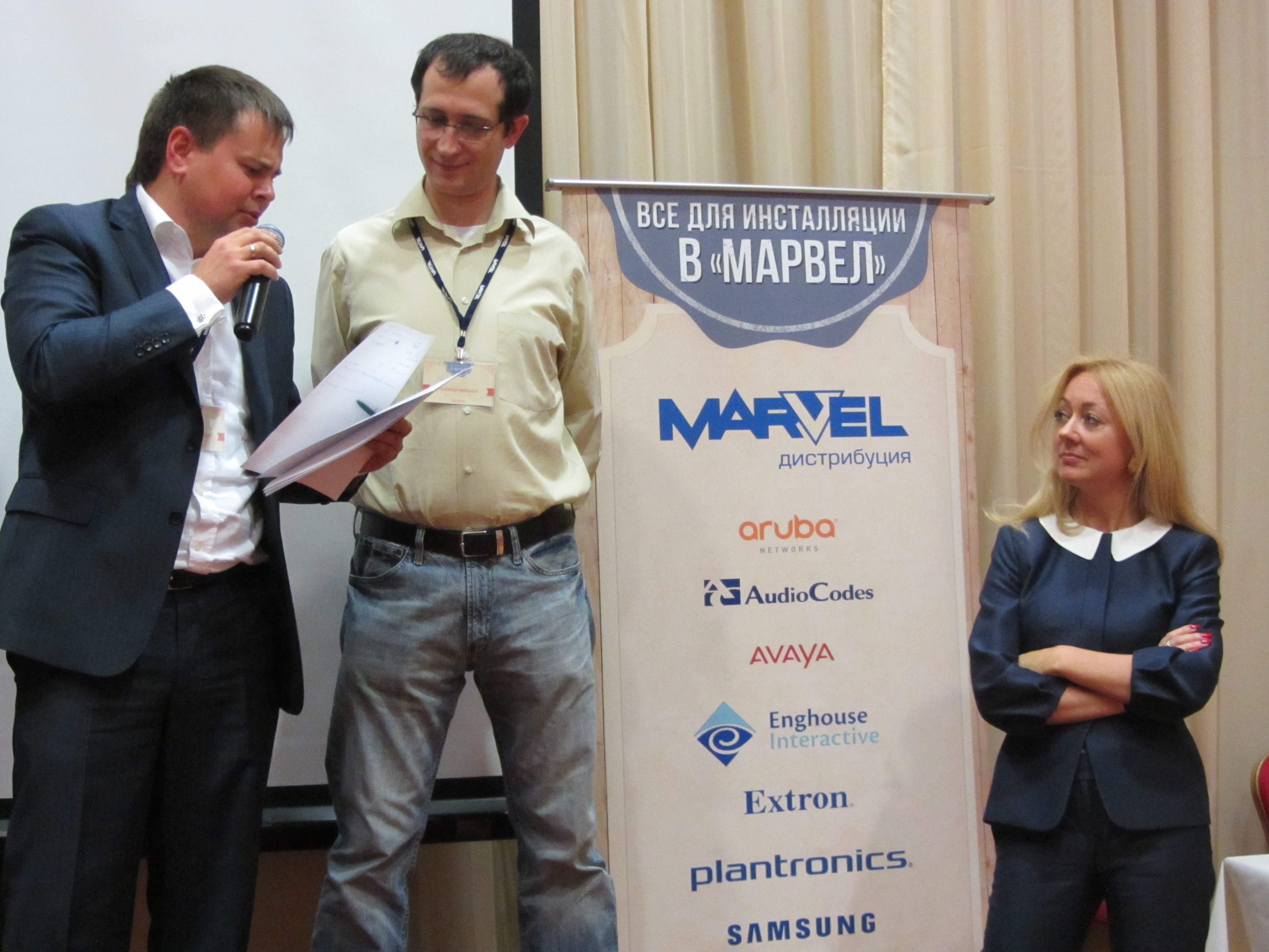 Рассказать о новинках продукции и обсудить будущее бизнеса в непростых экономических условиях приехали представители Avaya, Aruba, Extron, AudioCodes, Enghouse Interactive, Samsung и Plantronics. Интегрировав оборудование в единую систему, вендоры смогли не объяснять детали на пальцах, а показывать реальные технические возможности продуктов и примеры их внедрения на различных объектах. Любой желающий мог на планшетах Samsung подключиться к Wi-Fi-сети от Aruba, сделать звонок другу с использованием ip-телефонии от AudioCodes и гарнитур Plantronics, организовать видеоконференцию с помощью оборудования Avaya и протестировать работу системы коммутации Extron.